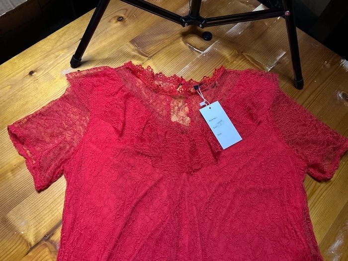 Haut rouge manches transparente - photo numéro 3