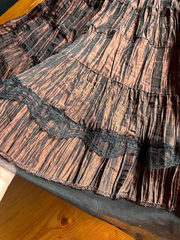 Jupe effet froissée marron noir broderie - photo numéro 2