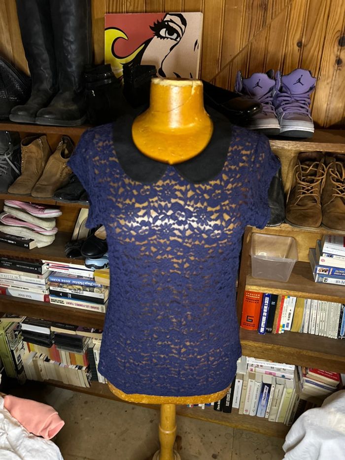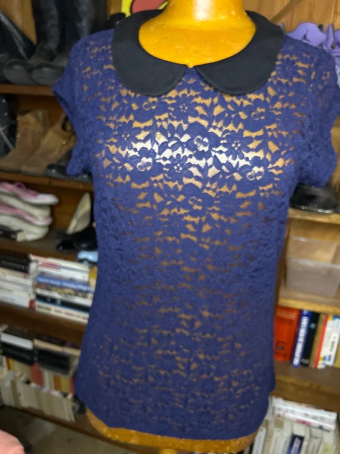 Top bi matière col noir NafNaf L dentelle - photo numéro 7