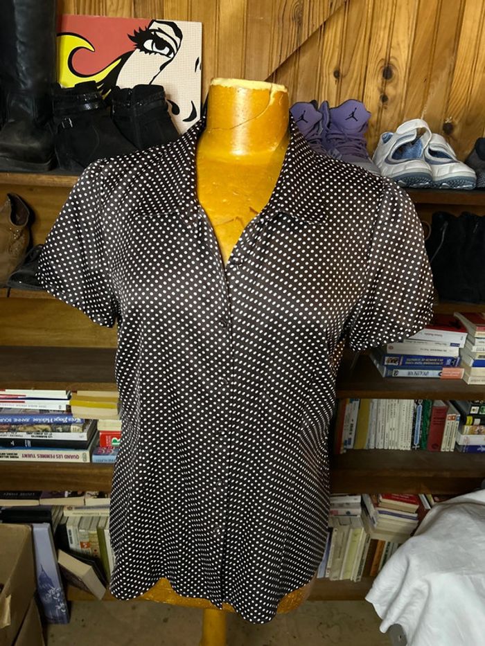 Chemise chocolat 46 pois - photo numéro 1