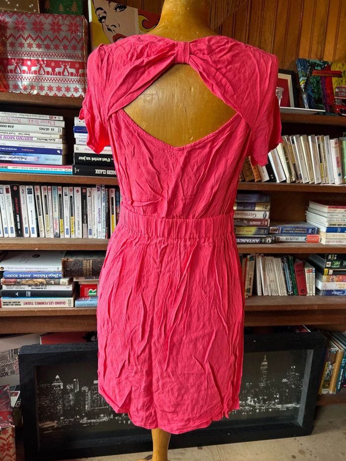 Neuve, sans étiquette Couleur rose Décolleté dans le dos, motif nœud Taille 38 Marque camaïeu
