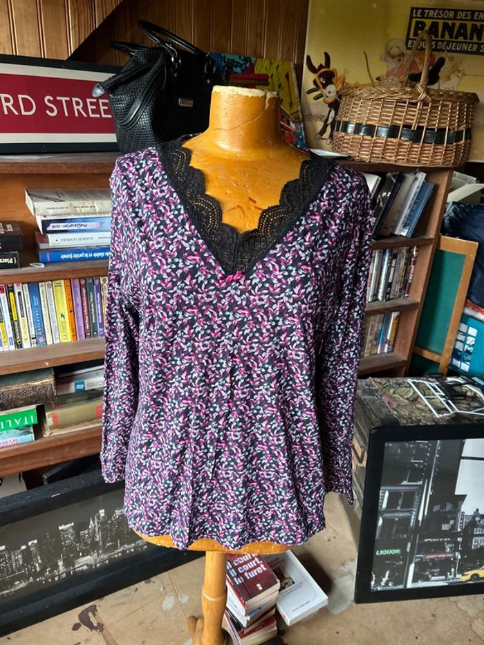 #justawinkdsvetementsfemme40 t-shirt manches longues Taille 40 Pas d’étiquette Motif fleur Dentelle sur le décolle