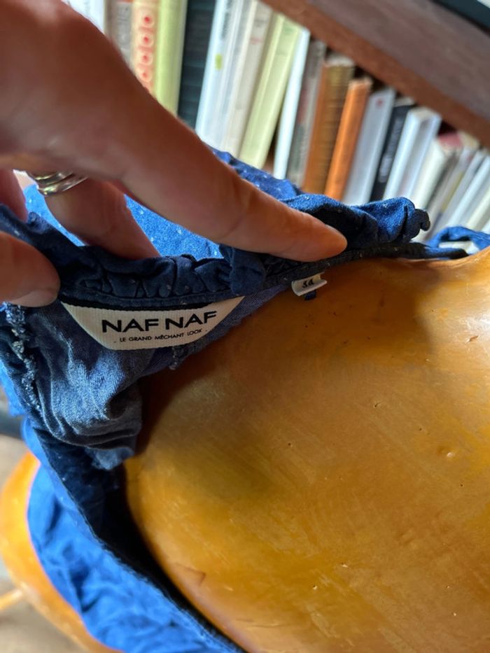 #justawinkdsvetementsfemme34 Couleur, jean bleu Noeuds devant et derrière autre possibilité de faire les nœuds. Taille 34 Marque Naf Naf