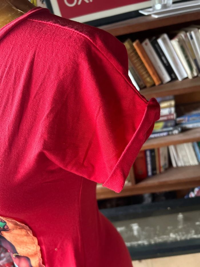 #justawinkdsvetementsfemme36 État neuf sans étiquette T-shirt long Motif visage Couleur rouge Deux. Poches.