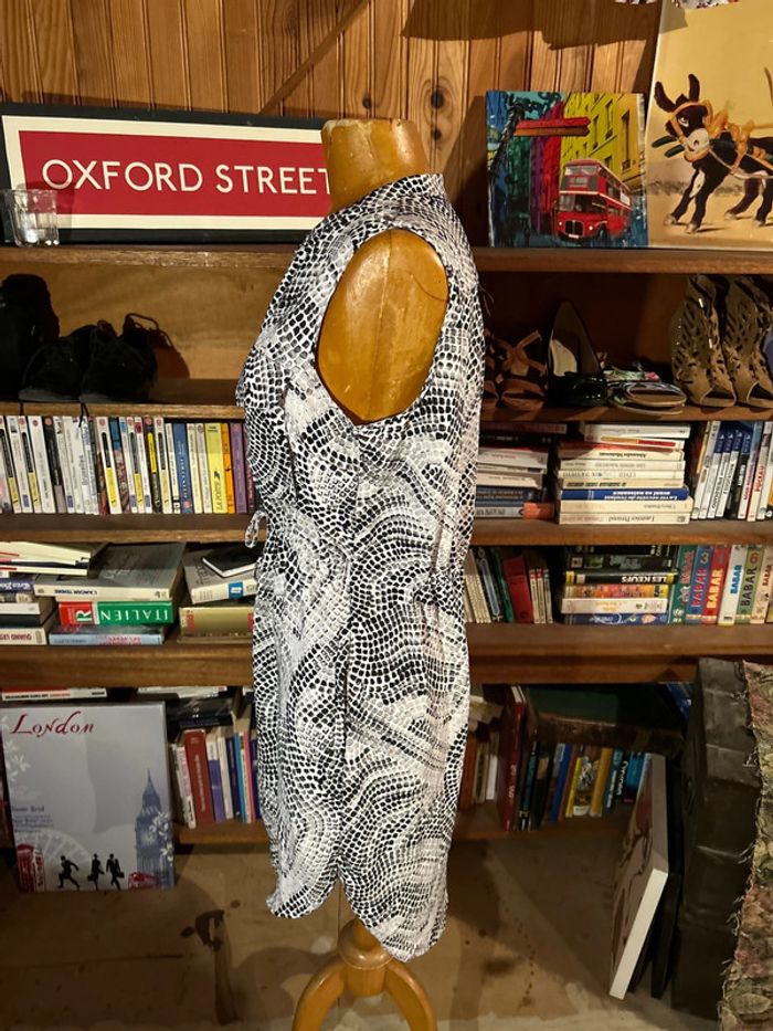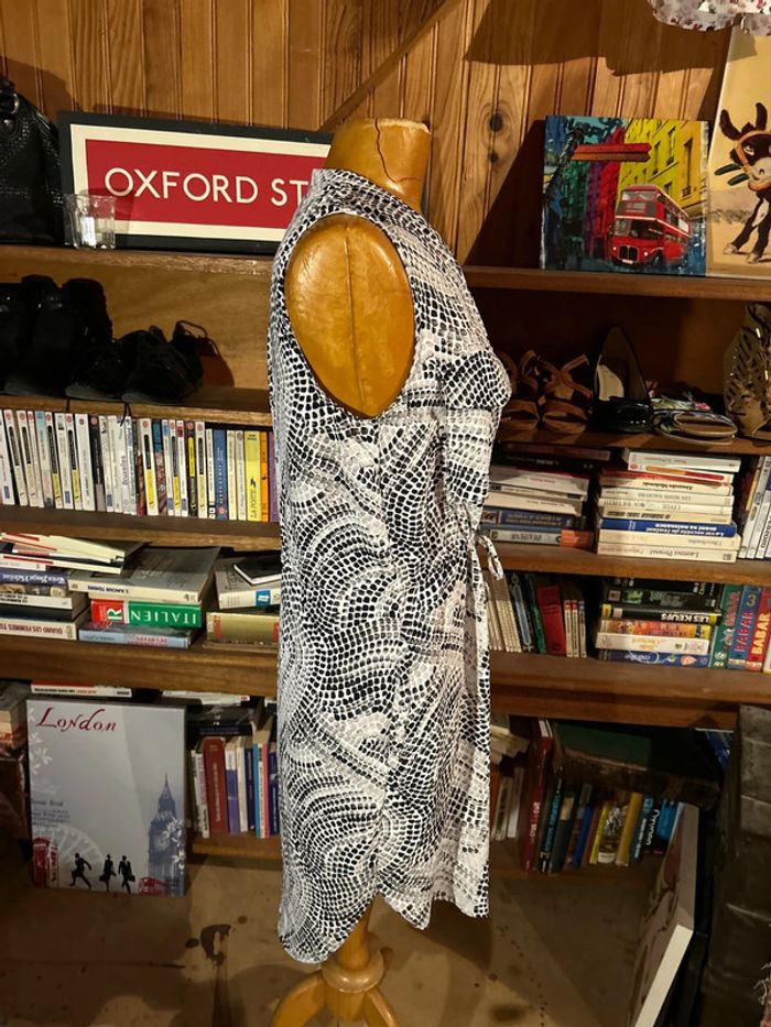 Robe noir et blanc sans manches lacet à la taille - photo numéro 6