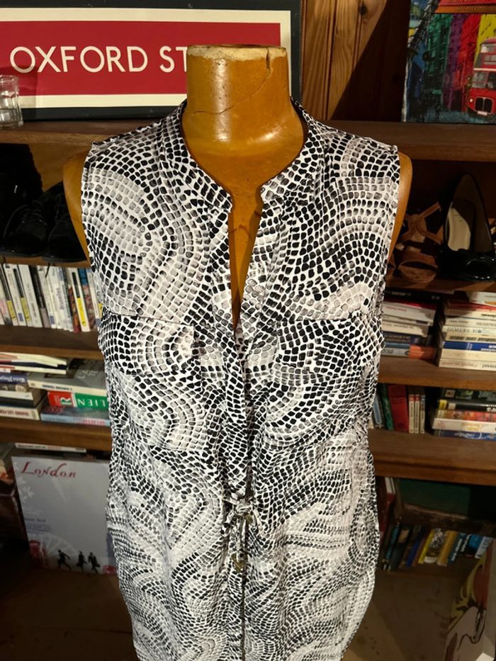 Robe noir et blanc sans manches lacet à la taille - photo numéro 2
