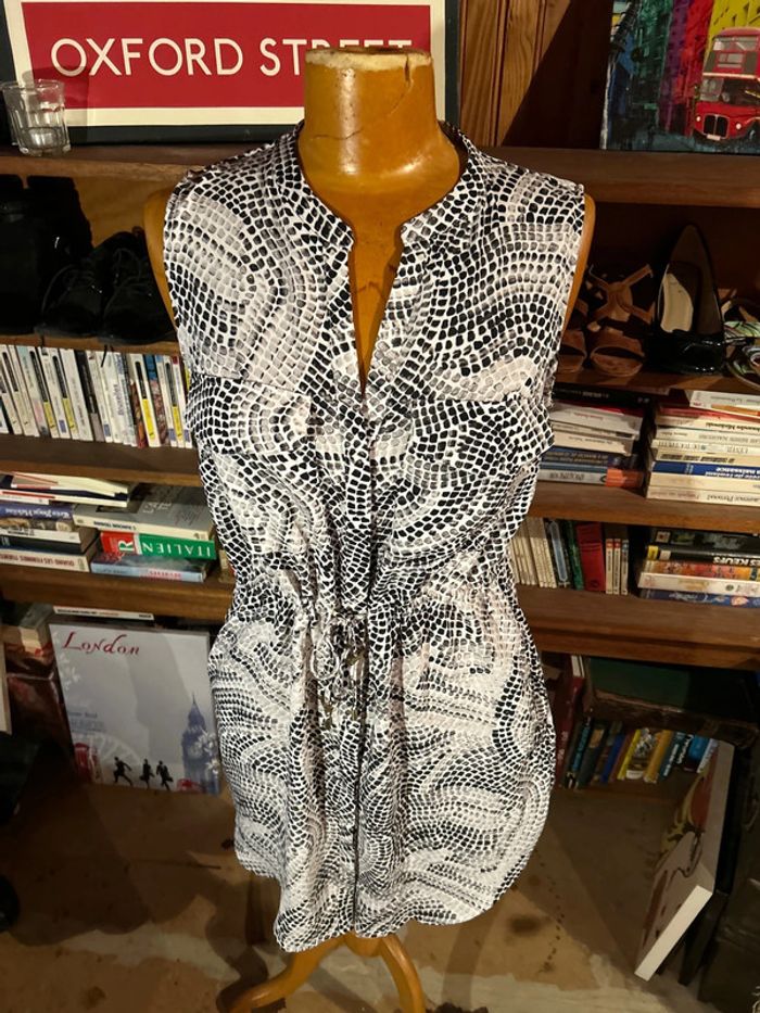Robe noir et blanc sans manches lacet à la taille - photo numéro 1