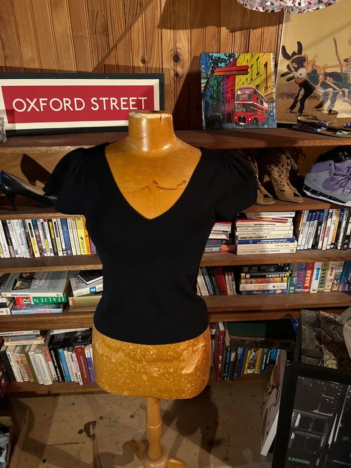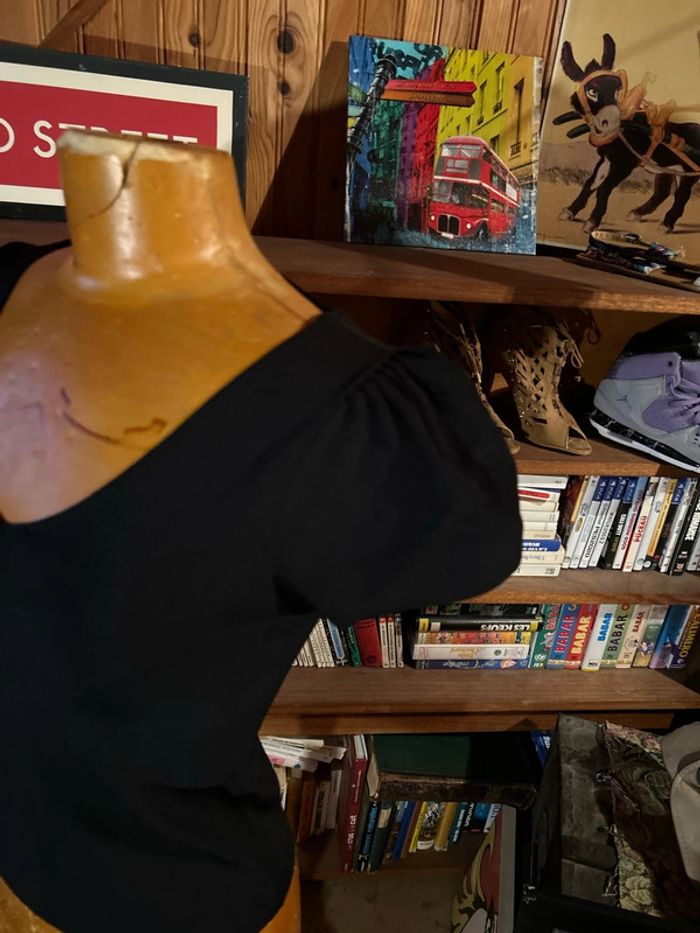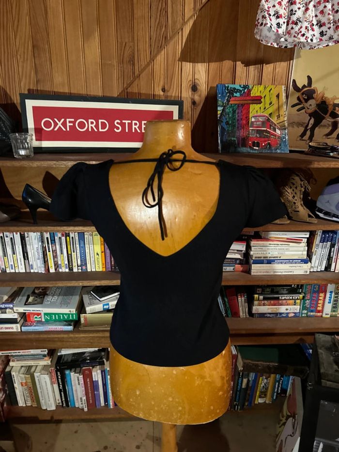 Top noir noeud dos épaule bouffante - photo numéro 4