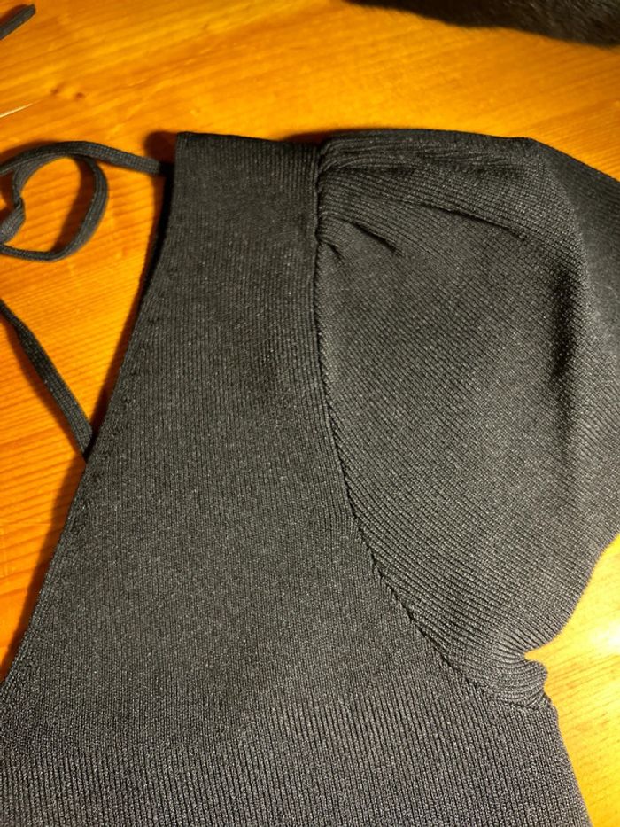 Top noir noeud dos épaule bouffante - photo numéro 3