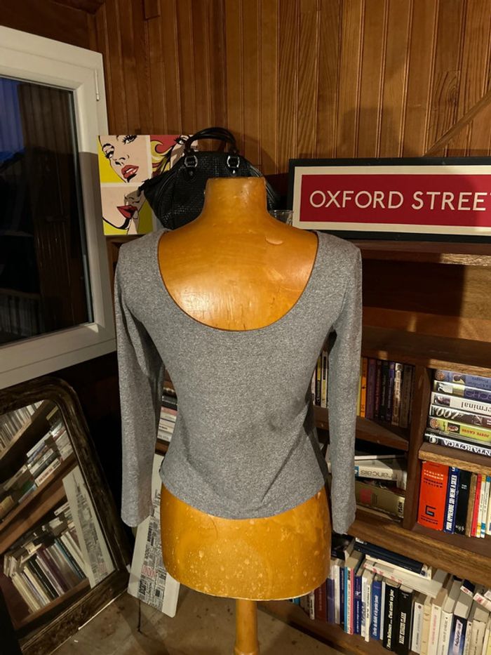 T-shirt manches longues gris décolleté dos Candy - photo numéro 2