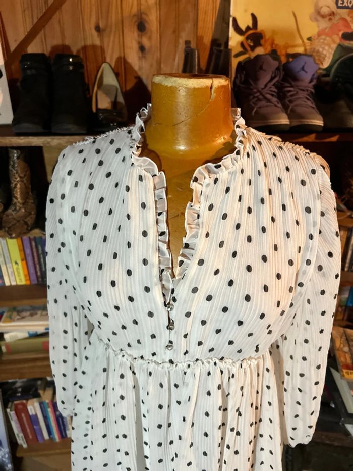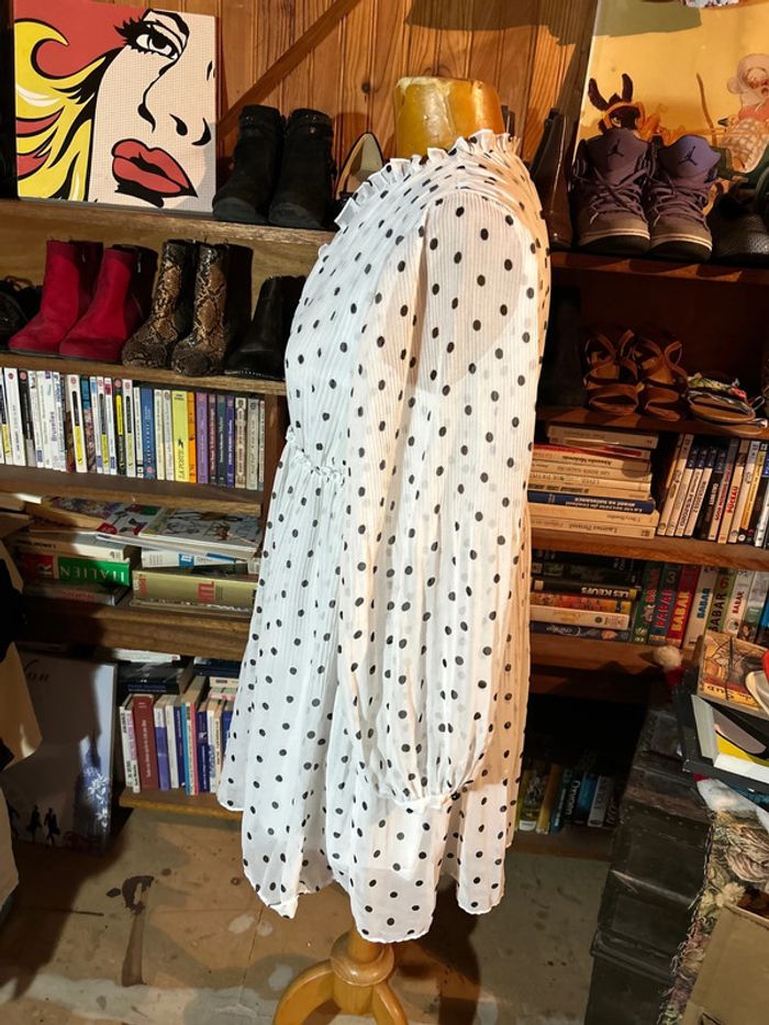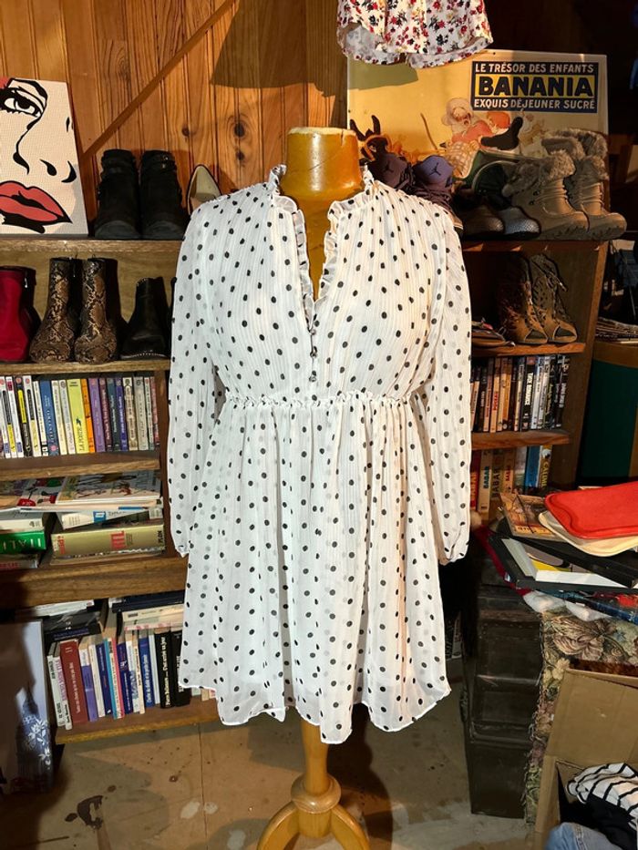 #justawinkdsvetementsfemme34 Mesures : Epaules à épaule 36 cm Longueur 82 cm Bouton bijoux sur le décolleté Taille XS Marque Zara Doublure sur la tunique, sauf sur les manches