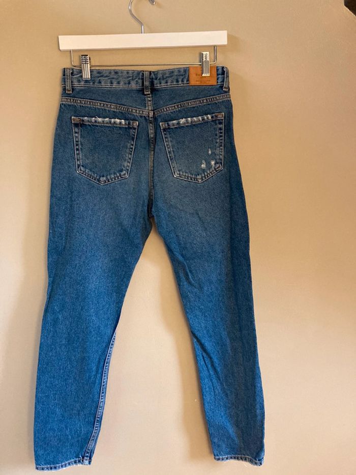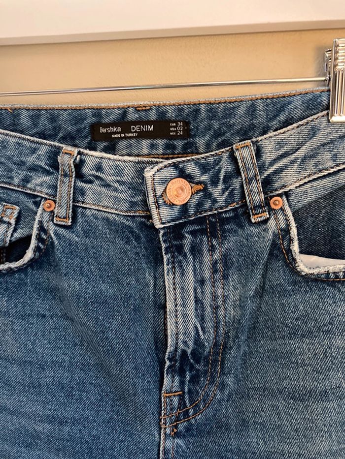 Jean droit, taille haute troué Bershka, taille 34. Parfait état. N’hésitez pas à visiter mon dressing #vanini78fille14ans 🩴👗🩴 #vanini78ado. Réductions sur les lots uniquement !