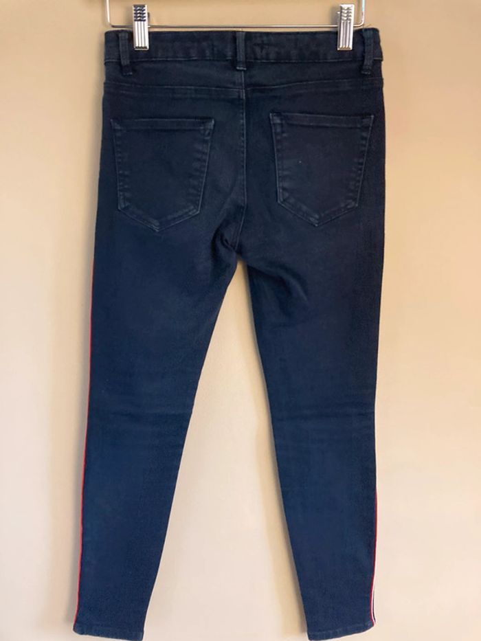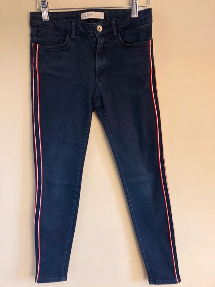 Jean skinny marine, bandes rouges et blanches sur le côté Zara, taille 34. En bon état N’ hésitez pas à visiter mon dressing #vanini78fille14ans 🩴👗🩴 ou #vanini78ado 👙👚👙. Réductions activées dès 2 articles et sur les lots uniquement !!