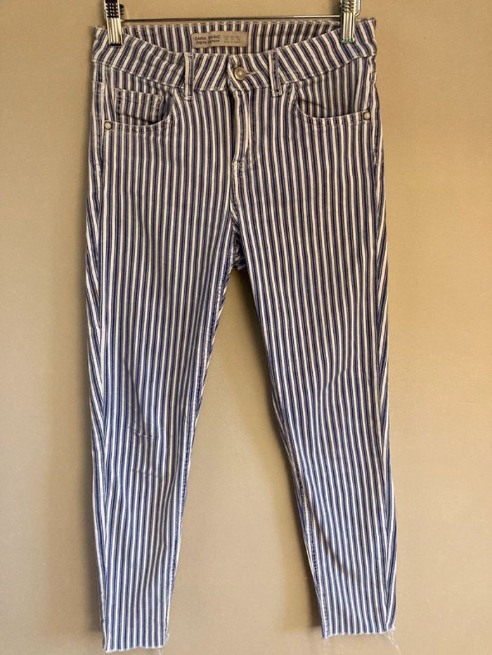 Pantalon skinny, style jean rayé Zara 36. Très bon état. N’hésitez pas à visiter mon dressing #vanini78ado 🌸 ou #vanini78femme36 🌷. Réductions sur les lots uniquement !!!