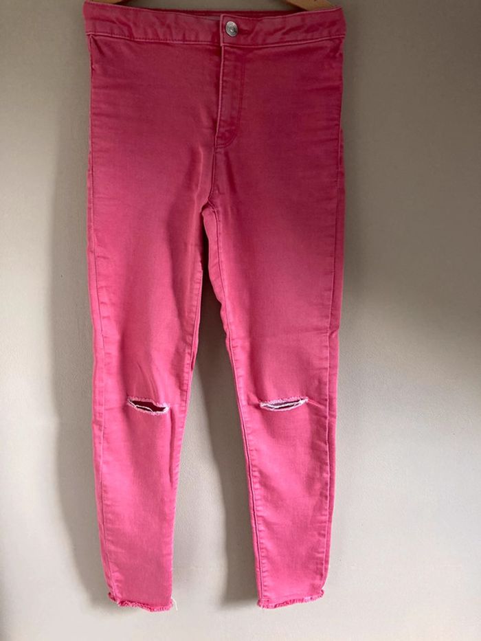 Jean rose skinny Zara 10 ans, taille élastique réglable, bas frangés et genoux troués (d’origine). Très bon état. N’hésitez pas à visiter mon dressing #vanini78fille10ans 🎀 Réductions sur les lots uniquement !!!