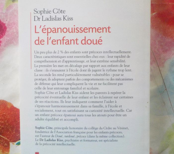 L'EPANOUISSEMENT DE L'ENFANT DOUE par Sophie CÔTE et Dr Ladislas KISS Ed. Albin Michel - Questions de parents Très bon état Résumé en photo n°2 #martinekrvessais