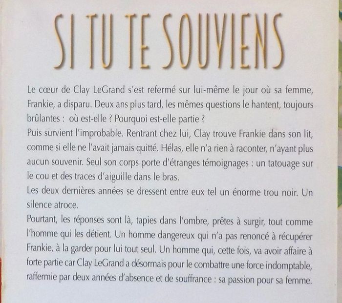 SI TU TE SOUVIENS de Sharon SALA Ed. Harlequin Best Sellers n°169 Bon état, pages jaunies, rousseurs Résumé en photo n°2 #martinekrvharlequins #martinekrvthrillers
