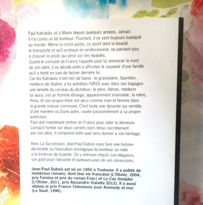 LA SUCCESSION de Jean-Paul DUBOIS Ed. de l'Olivier Très bon état MAIS 2 traces sur le haut de la tranche (cf photo) Résumé en photo n°2 #martinekrvromans