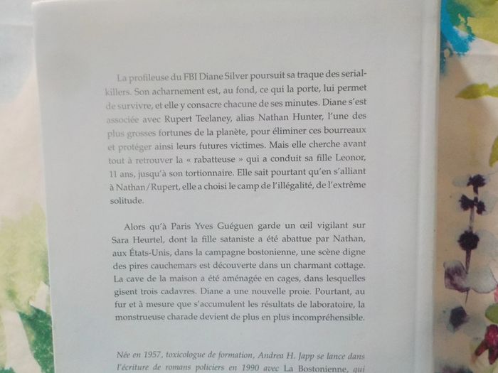 UNE OMBRE PLUS PALE de Andrea H. JAPP Ed. Le Grand Livre du Mois Très bon état La profileuse du FBI Diane Silver poursuit sa traque des serial-killers. Son acharnement est, au fond, ce qui la porte, lui permet de survivre, et elle y consacre chacune de ses minutes. Diane s'est associée avec Ruppert Teelaney, alias Nathan Hunter, l'une des plus grosses fortunes de la planète, pour éliminer ces bourreaux et protéger ainsi leurs futures victimes. Mais elle cherche avant tout à retrouver la "rabatteuse" qui a conduit sa fille Leonor, 11 ans, jusqu'à son tortionnaire. Elle sait pourtant qu'en s'alliant à Nathan/Rupert, elle a choisi le camp de l'illégalité, de l'extrême solitude. Alors qu'à Paris Yves Guéguen garde un oeil vigilant sur Sara Heurtel, dont la fille sataniste a été abattue par Nathan, aux Etats-Unis, dans la campagne bostonienne, une scène digne des pires cauchemars est découverte dans un charmant cottage. La cave de la maison a été aménagée en cages, dans lesquelles gisent trois cadavres. Diane a nouvelle proie. Pourtant, au fur et à mesure que s'accumulent les résultats de laboratoire, la monstrueuse charade devient de plus en plus incompréhensible. #martinekrvthrillers