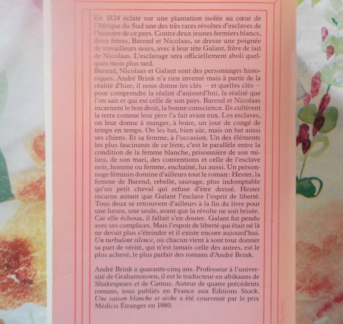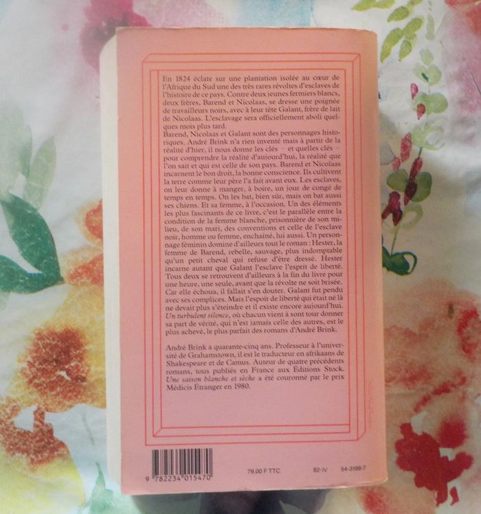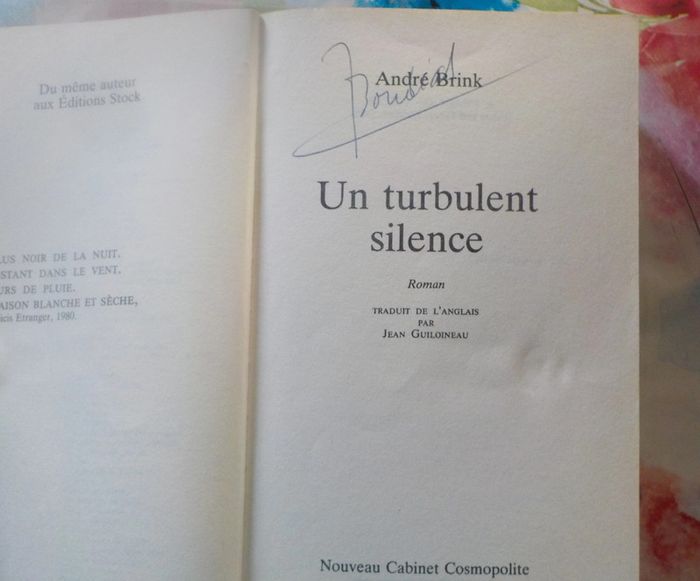 UN TURBULENT SILENCE de André BRINK Ed. Stock Bon état Pages jaunies une signature sur les 2e et 3e pages intérieures Résumé en photo n°2 #martinekrvromans
