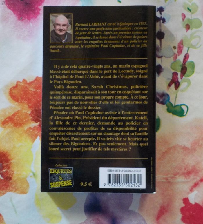 OMERTA BIGOUDENE Les enquêtes du Capitaine Paul Capitaine de Bernard LARHANT Ed. Alain Bargain - Enquêtes et suspense Bon état Il y a de cela quatre-vingts ans, un marin espagnol blessé est débarqué dans le port de Loctudy, soigné à l'hôpital du Pont-L'Abbé, avant de s'évaporer dans le Pays Bigouden. Voilà douze ans, Sarah Christmas, policière quimpéroise, disparaissait à son tour en enquêtant sur le sort de ce marin, pour son propre compte. À ce jour, toujours pas de nouvelles d’elle et les gendarmes de Pénalec ont classé le dossier. Pénalec où Paul Capitaine assiste à l’enterrement d’Alexandre Pin, Président du département. Katell, la fille de ce dernier, demande au policier en convalescence de profiter de sa disponibilité pour enquêter discrètement sur un chantage dont sa famille fait l’objet. Paul accepte. Il va très vite se heurter au silence des Bigoudens. Et pas seulement. Mais quel lourd secret peut justifier de tels mystères ? #martinekrvthrillers