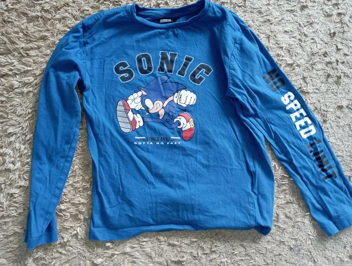 Tee shirt manches longues Sonic avec écriture sur la manche gauche.Mis une fois en très bon état.Taille 10ans.