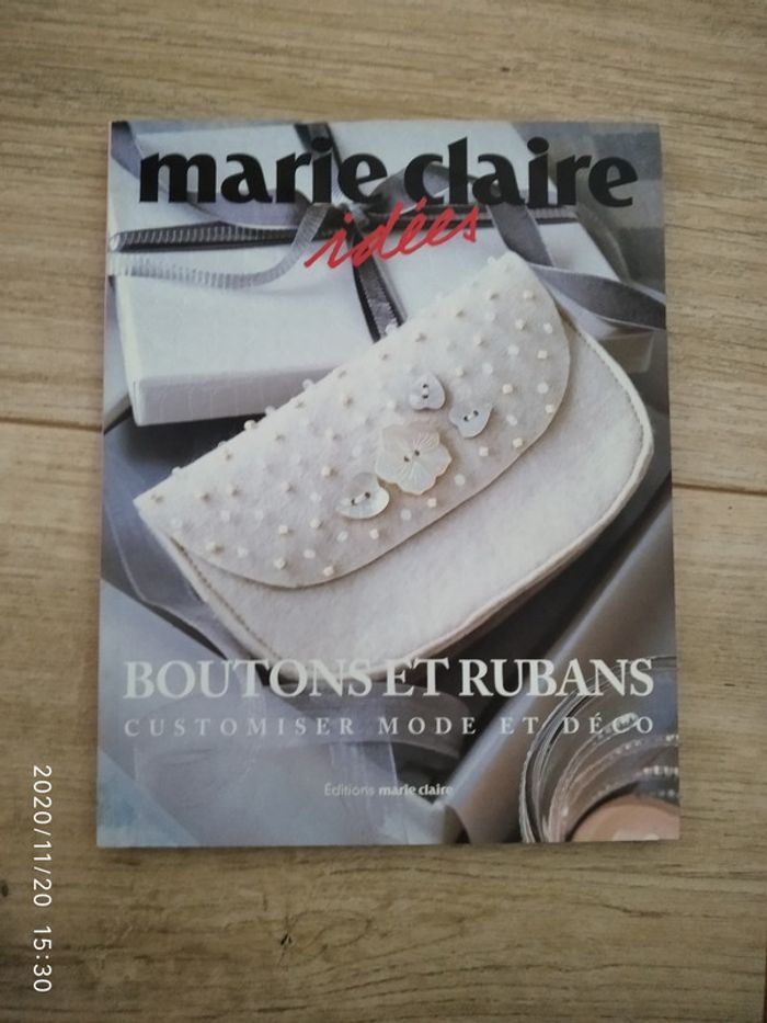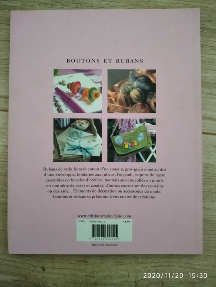 Livre pour customiser et réaliser des créations avec boutons et petite marque à l arrière lorsque je l ai stocké en carton voir dernière photo.
