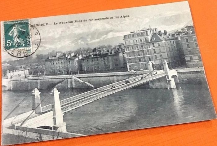 Carte postale ancienne Grenoble (Isère) Le nouveau Pont de fer suspendu et les Alpes - photo numéro 4
