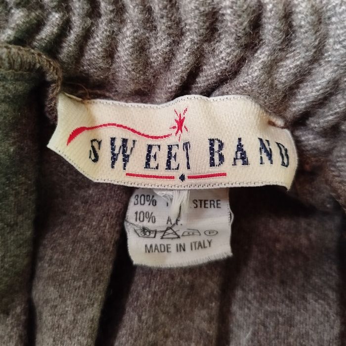 Jupe de couleur grise de la marque Sweet Band. Matière assez laineux. Taille Non indiqué (plutôt 34/36) J'ai acheté cette jupe à une autre membre, indiqué une taille 38, mais elle ne me va pas, elle est trop petite. Matières : - 60% Laine - 30% Polyester - 10% A.F. Dimensions : - Largeur Taille = 30 cm (Extensible jusqu'à 38 cm) - Longueur = 46 cm