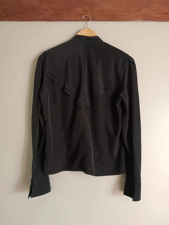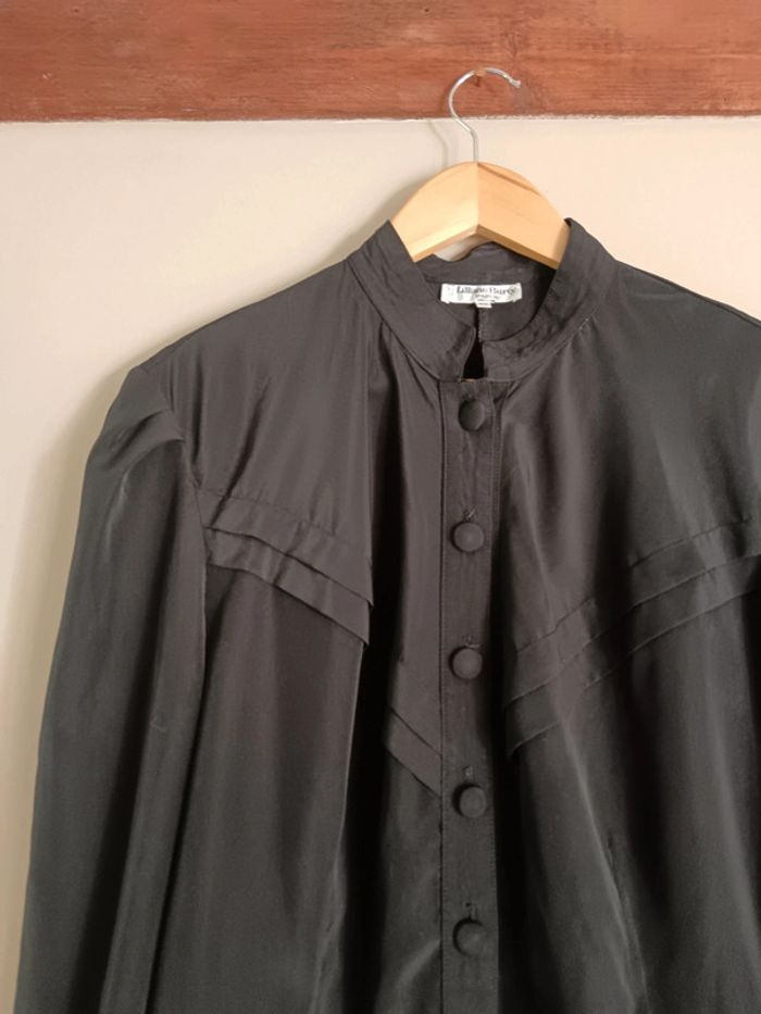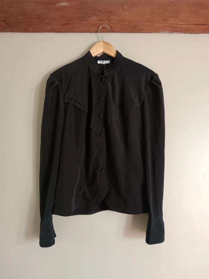 💐 Réductions sur les lots 💐 2 articles : -5% 3 & 4 articles : -10% 5 articles et plus : -15% ⚠️ Pas d'envoi Vinted go, merci Étant une entreprise déclarée payant des charges, merci de respecter mon travail en ne le bradant pas 🙏 ✨ Chemisier noir manches longues, bout de manches revers sans bouton, volants poitrine et col montant officier Très chic Liliane Burty Paris, fabriqué en France, années 80 100% polyester de belle facture Très bon état Taille 42 Je le porte sur un 36 sur les photos et mesure 1m61 📏 Dimensions à plat : carrure 46cm, largeur poitrine 54cm, longueur 61cm #desibellesfripes42