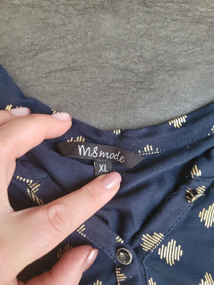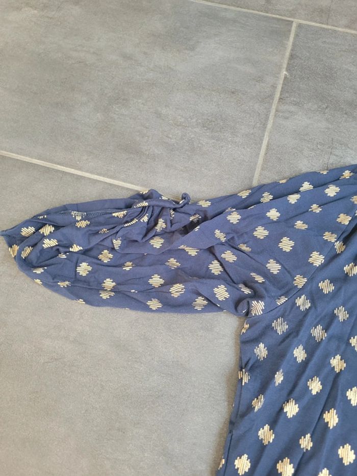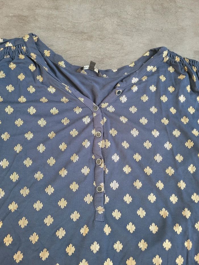 Blouse/t shirt bleue avec motifs Dorés Manches 3/4 avec revers En excellent état, mis 1 fois #philmarifemmexl