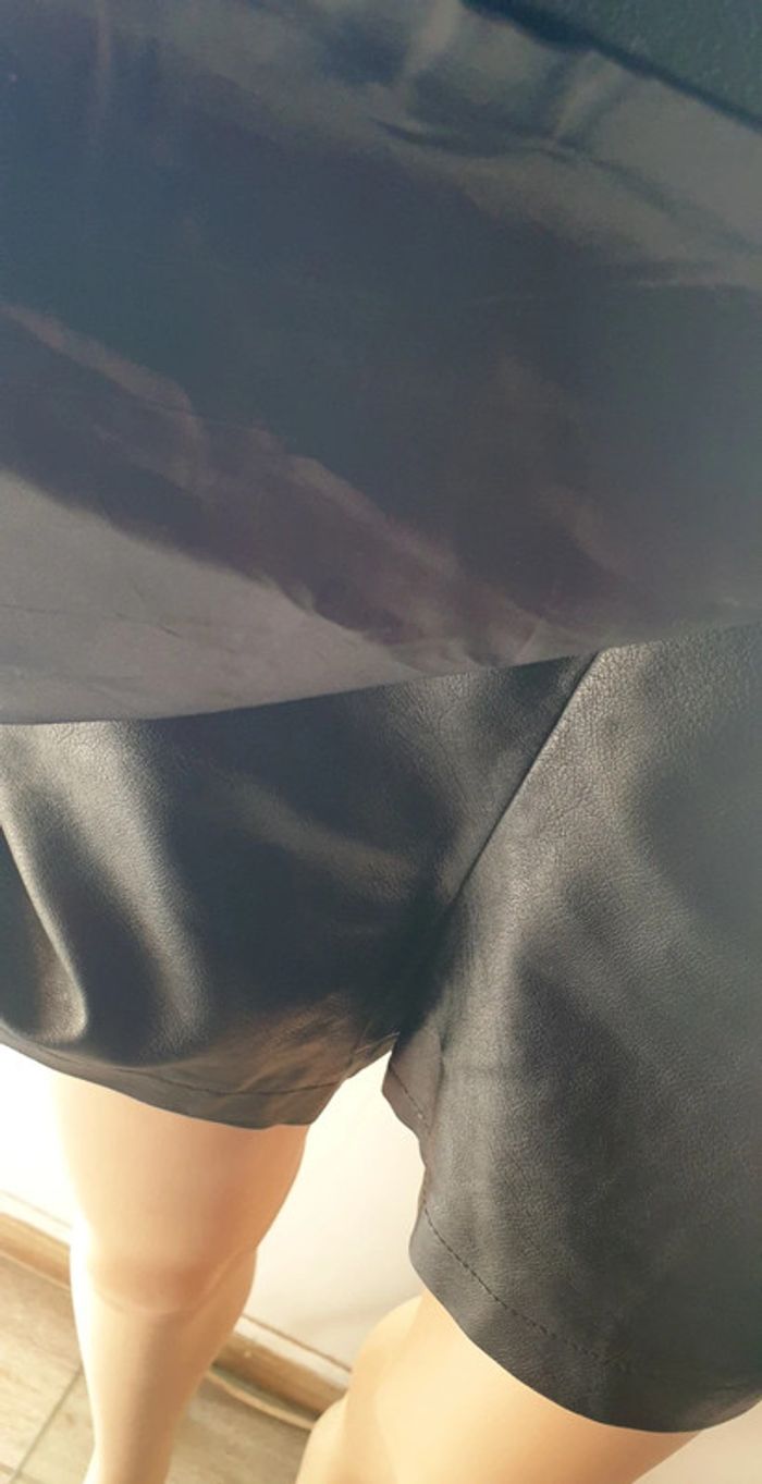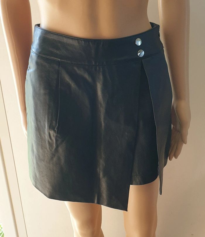 💜 Jupe-short trapèze simili cuir taille S 36 Cache Cache #emyfleury_36femme