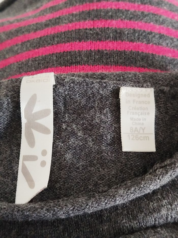 Pull en laine gris à rayures fuschia Okaïdi taille 8 ans - photo numéro 1