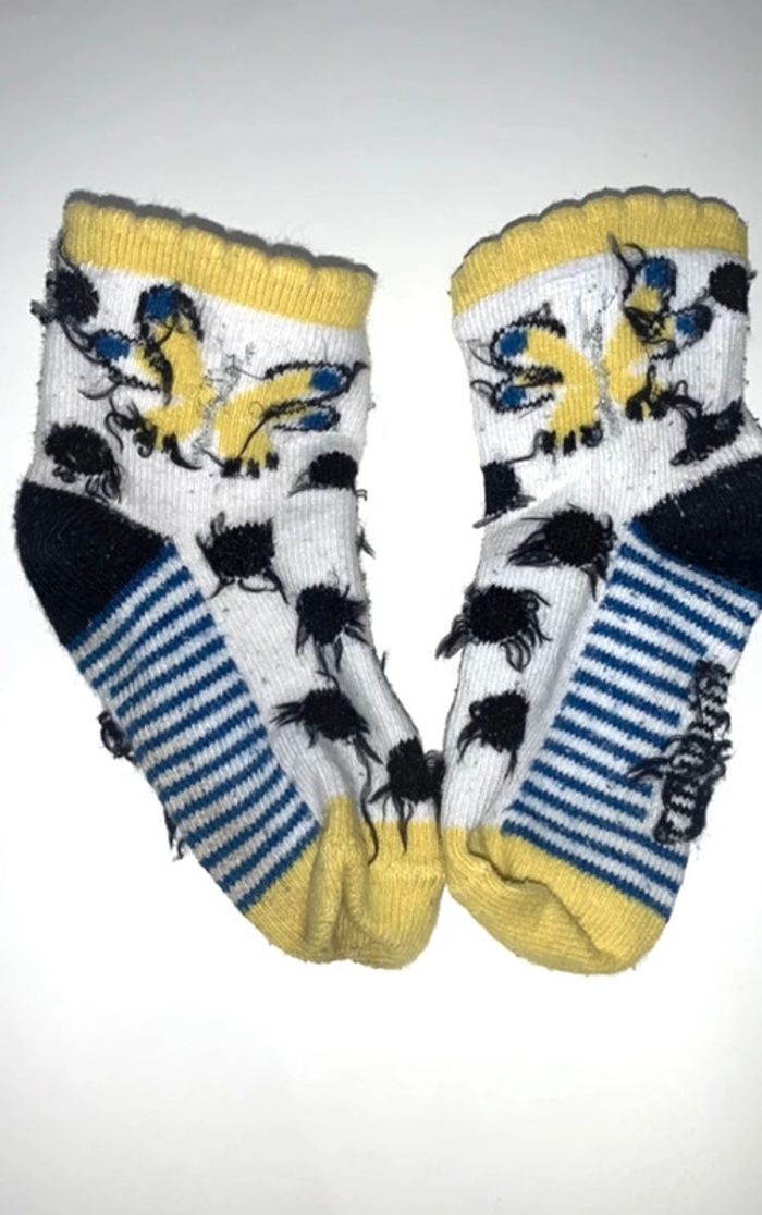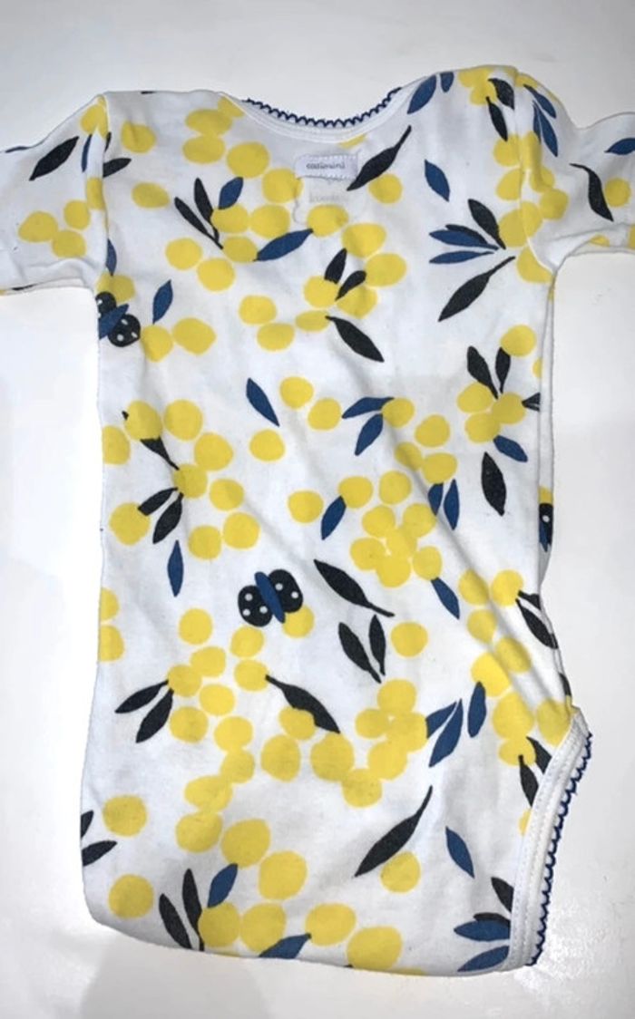 Ensemble body manches courtes avec chaussettes assortis motifs bleu jaune Taille 6 mois Excellent état