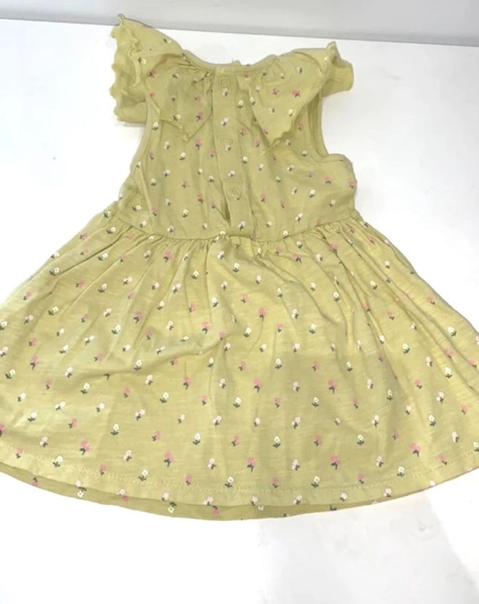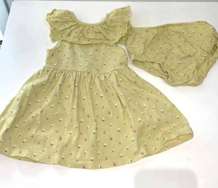 Robe col Claudine avec bloomer assorti jaune à fleurs roses Taille 12 mois Excellent état portée 1 fois