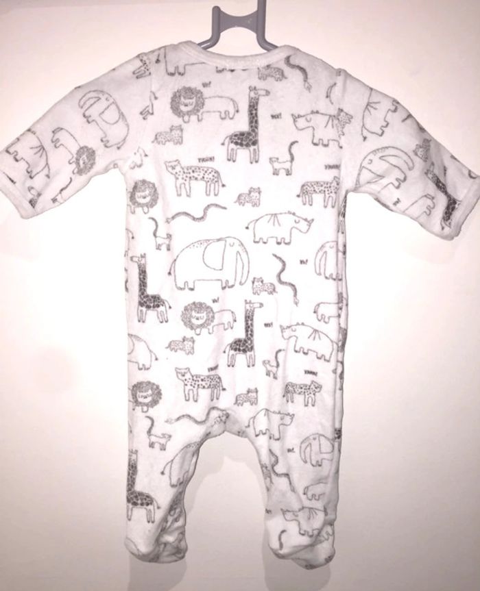 Pyjama velours blanc avec motifs lion éléphant girafe Taille 1 mois Excellent état