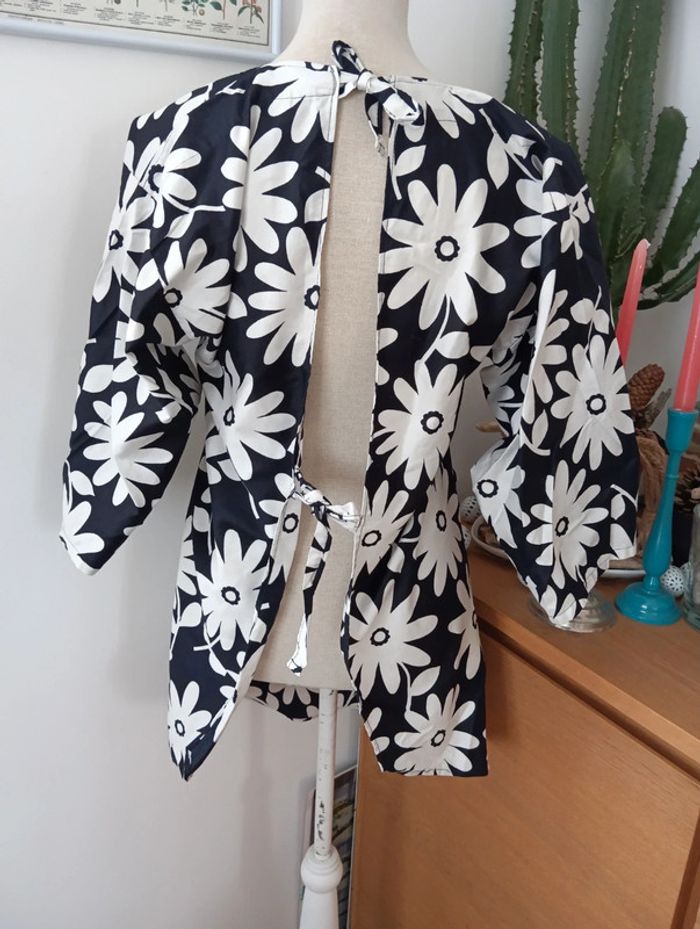 Blouse noire à fleurs blanches taille 38/40 - photo numéro 6
