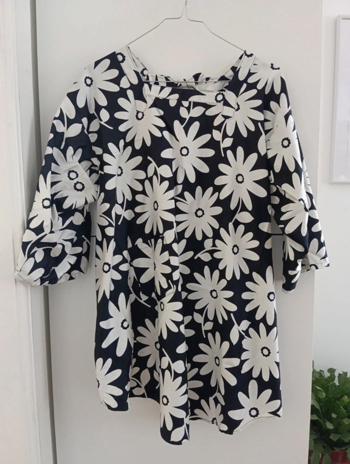 Blouse noire à fleurs blanches taille 38/40 - photo numéro 2
