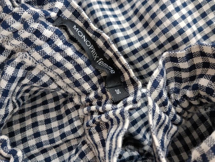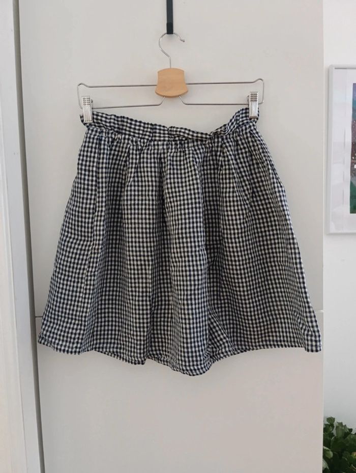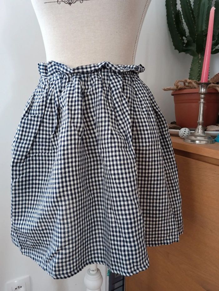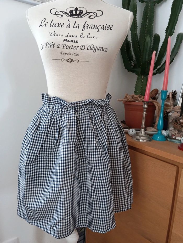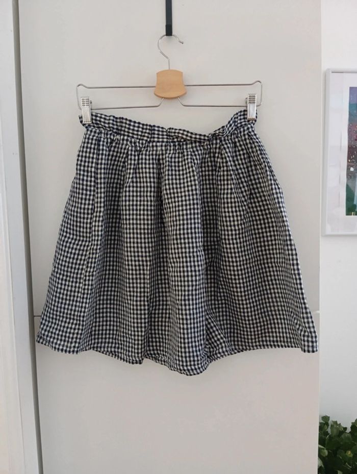 Jupe vichy lin et coton patineuse Monoprix taille 36 51% lin 49% coton Taille élastique Très agréable a porter. Souple et légère