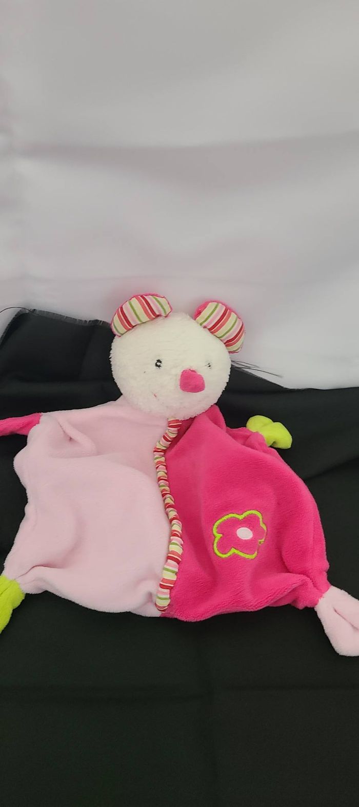 Doudou plat souris BABY CLUB C&A rayé rose et fleur - photo numéro 1