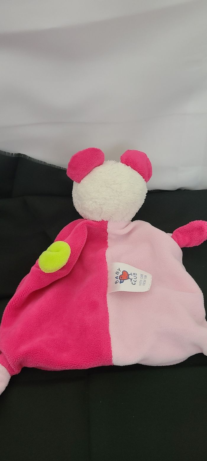 Doudou plat souris BABY CLUB C&A rayé rose et fleur - photo numéro 4