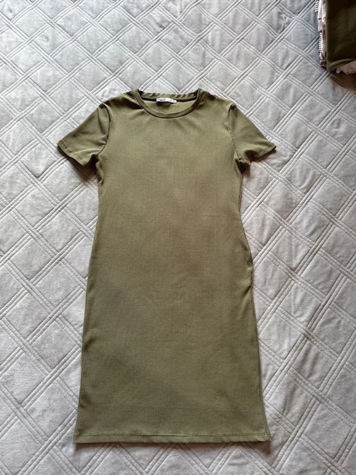 Robe moulante Lefties – Taille L Très bon état, couleur kaki, matière côtelée extensible qui épouse bien la silhouette. Manches courtes et col rond, coupe au-dessus du genou. Idéale pour un look simple et efficace, de jour comme de soir. Envoi rapide et soigné. N’hésitez pas si vous avez des questions ! Mesures: Épaules 38cm Aisselles 41cm Longueur 87cm Envoi rapide et soigné N’hésitez pas si vous avez des questions