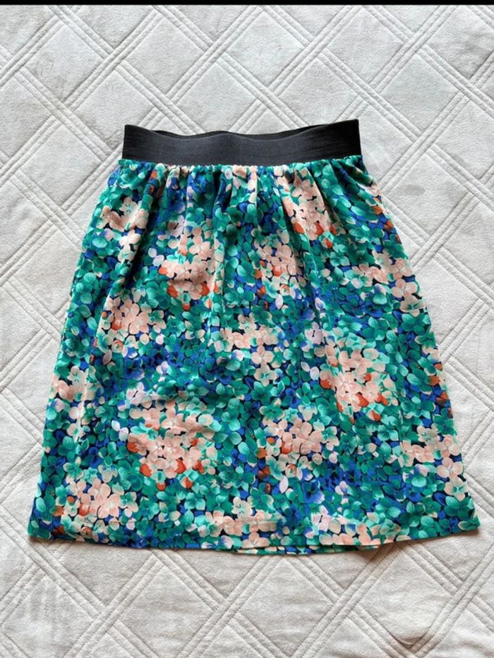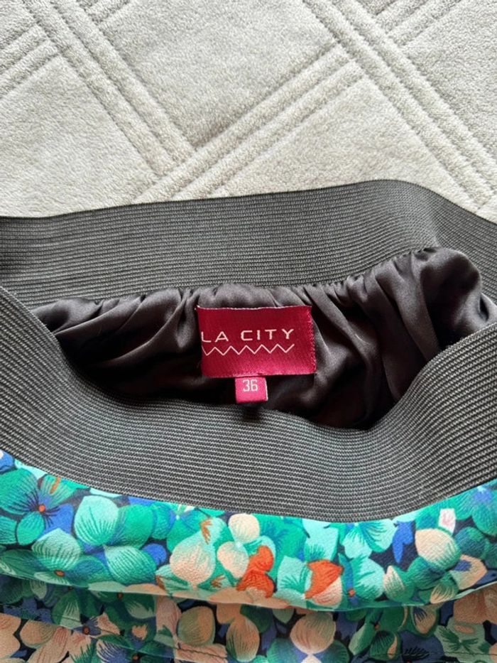 Jupe fleuri bleu Très bon état Taille: 36 Marque: La city Le tour de taille est élastique Mesures Tour de taille: 28cm Longueur: 50cm Envoi rapide et soigné N’hésitez pas si vous avez des questions