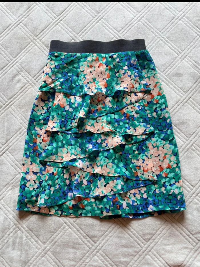 Jupe fleuri bleu à volants - La city - taille S - très bon état - photo numéro 1