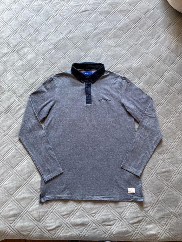 Polo longues manches bleu chiné - Jack & Jones - Taille L - Très bon état - photo numéro 1