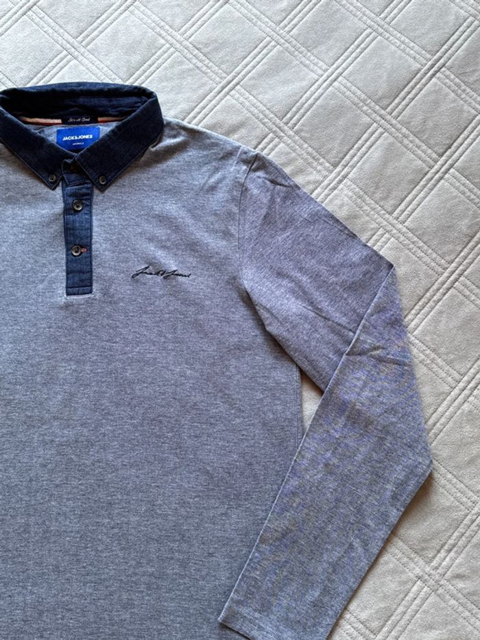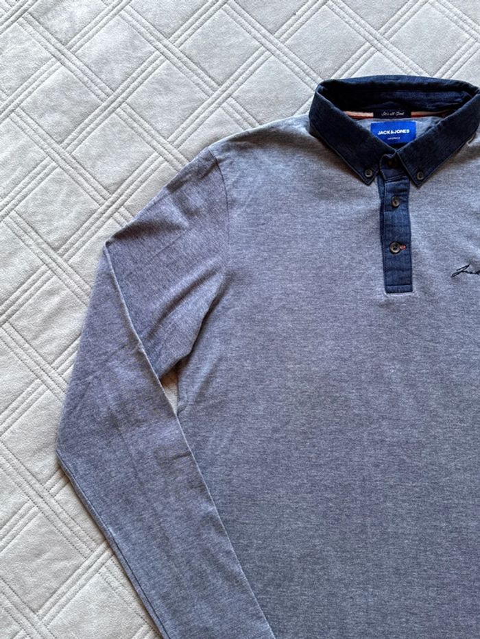 Polo longues manches bleu chiné - Jack & Jones - Taille L - Très bon état - photo numéro 2