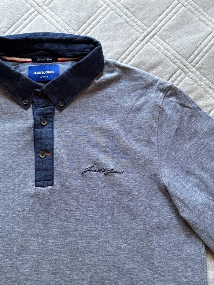 Polo longues manches bleu chiné - Jack & Jones - Taille L - Très bon état - photo numéro 3