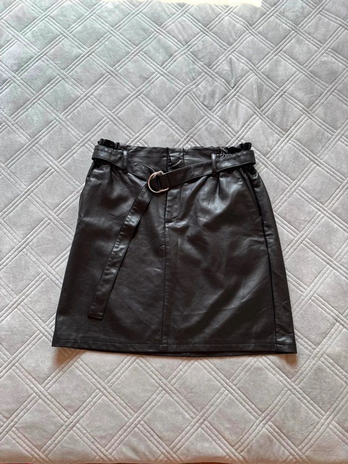 Jupe courte noir style cuir Très bon état Marque cache cache Taille 40 100% synthétique Tour de taille: 38cm Longueur: 49cm Négociable !😄 Envoi rapide et soigné N'hésitez pas si vous avez des questions