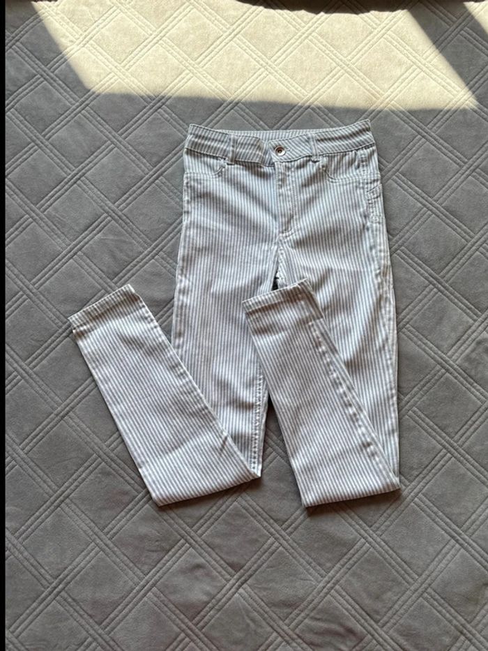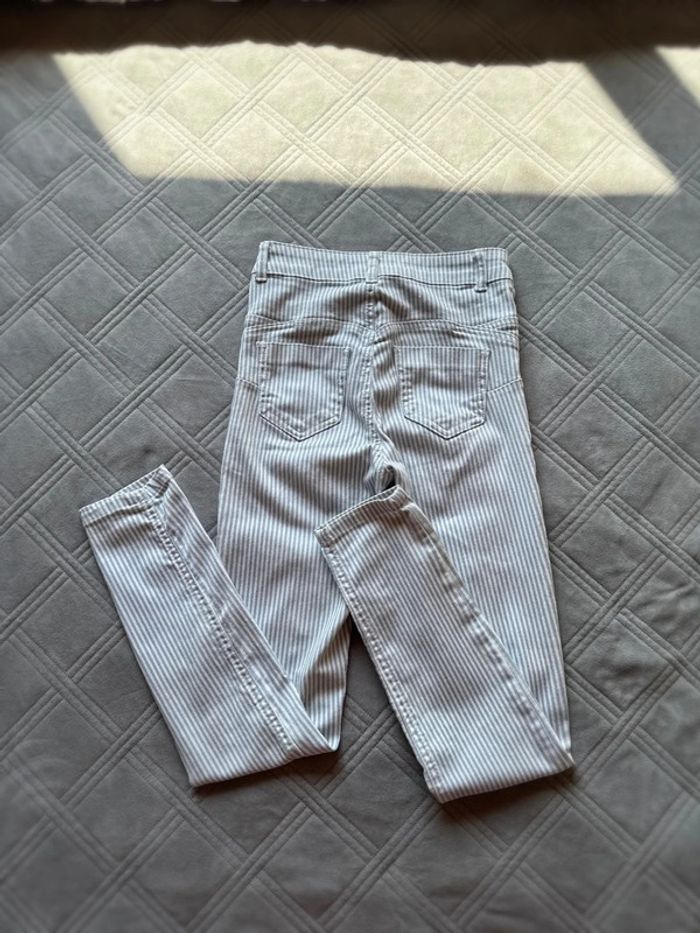 Legging taille haute rayé bleu ciel de la marque Calzedonia, en taille XS. Il est en parfait état, très peu porté. 🔹 Coupe élégante et confortable 🔹 Matière agréable à porter 🔹 Idéal pour un look chic et décontracté Mesures Longueur: 94cm Entre jambe: 68cm Tour de taille: 28cm Hauteur: 31cm Cheville: 12cm Envoi rapide et soigné N’hésite pas à me contacter pour plus d’infos !