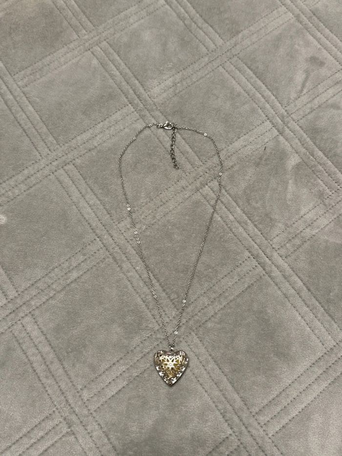Collier argenté avec pendentif cœur ajouré qui s’illumine dans le noir. Original, romantique et parfait pour se démarquer ! Très bon état. 📦Envoi rapide & soigné 📣 N’hésitez pas à faire des lots les réductions sont activés Et si vous avez des questions je suis là #collier #bijoufantaisie #cœur #brille #lumière #original #cadeau #accessoirefemme